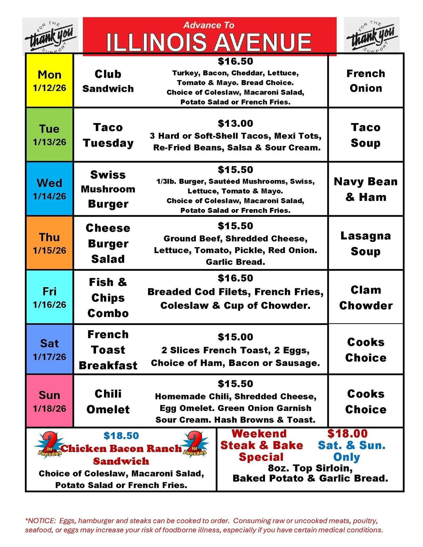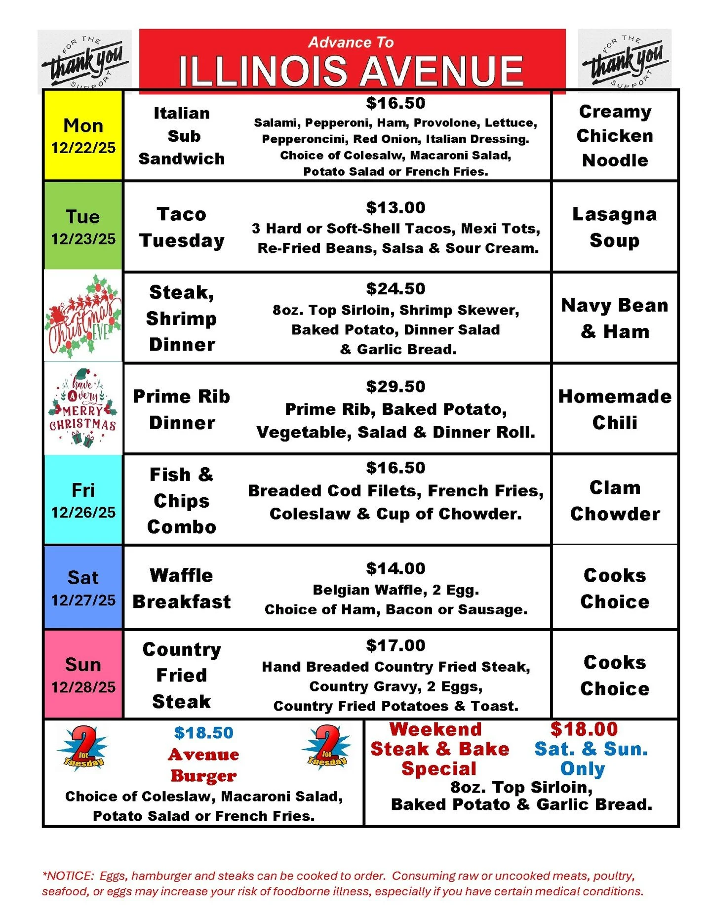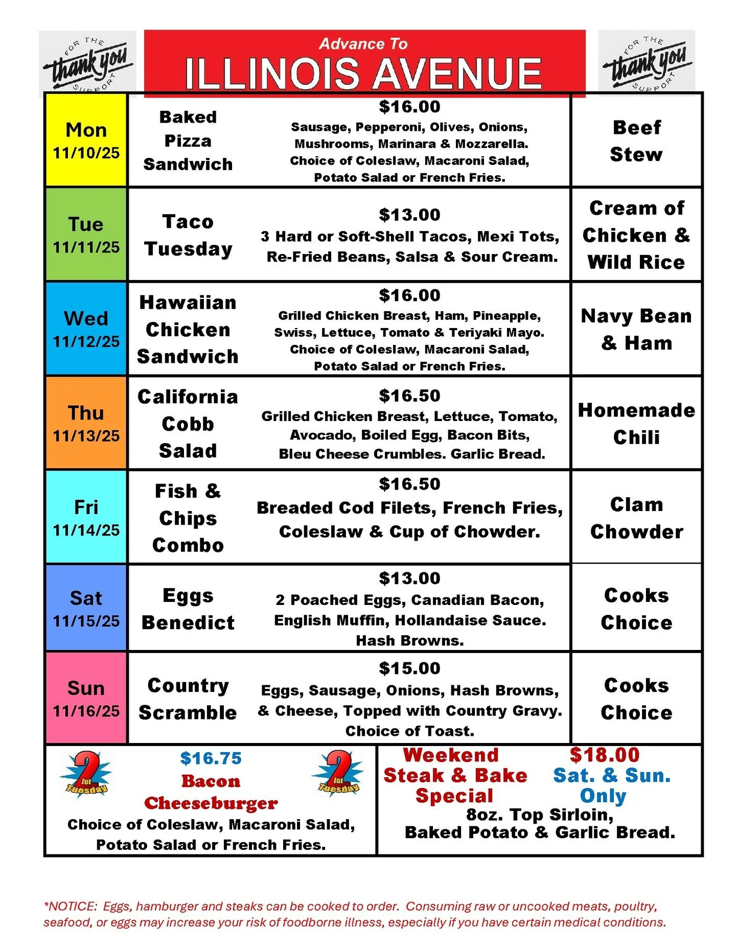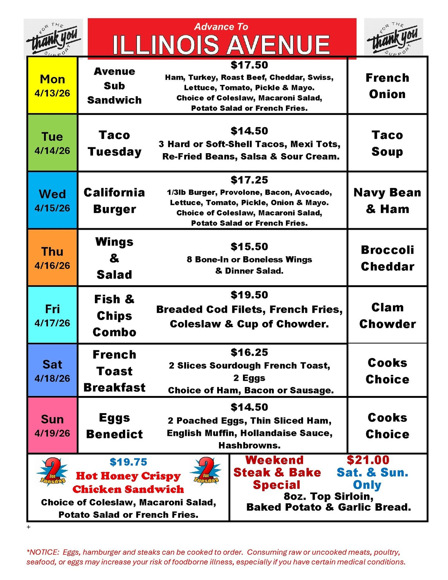 In early 2000, four brothers and their spouses came together to help Rod, the eldest brother, find a business to run. After exploring various opportunities, they acquired an older tavern in Spokane called "Jimmies Tavern." Following renovations, painting, and other improvements, they opened the Illinois Avenue Bar and Grill on November 8, 2000. This year, 2025, marks our 25th year in operation. Along with the name change, we transitioned from a tavern to a bar, now offering a selection of not only beer and wine but also mixed drinks and a full food menu