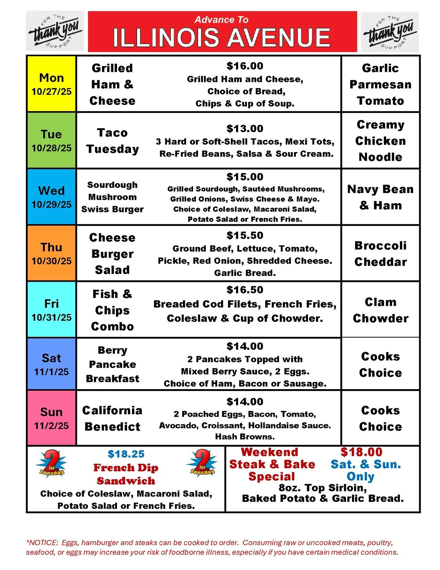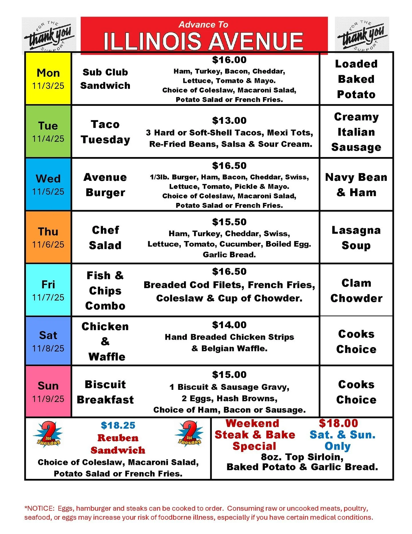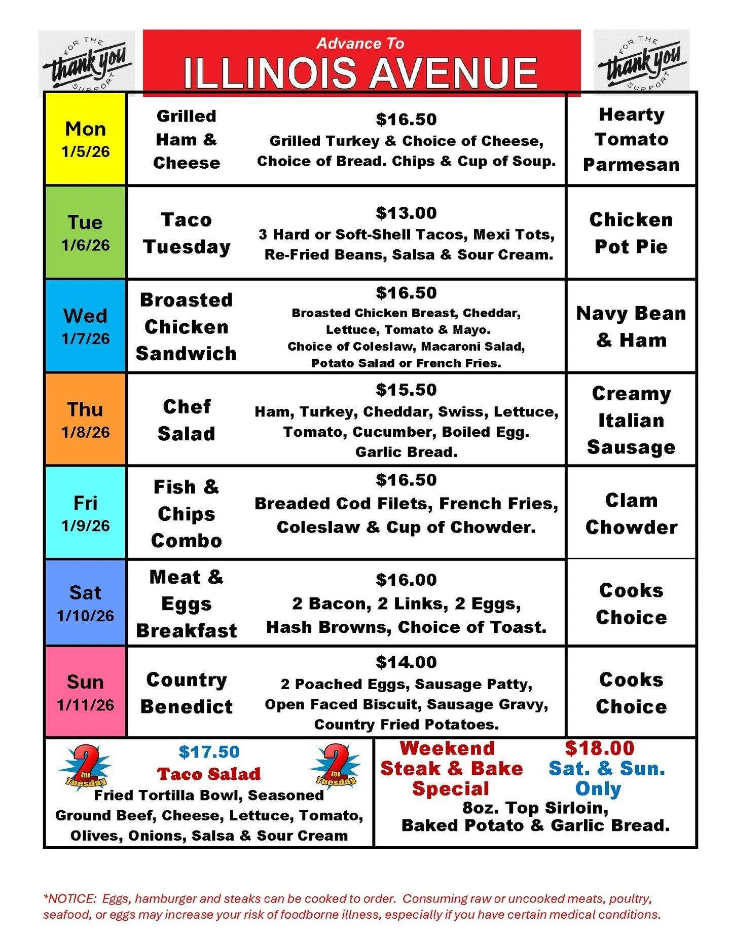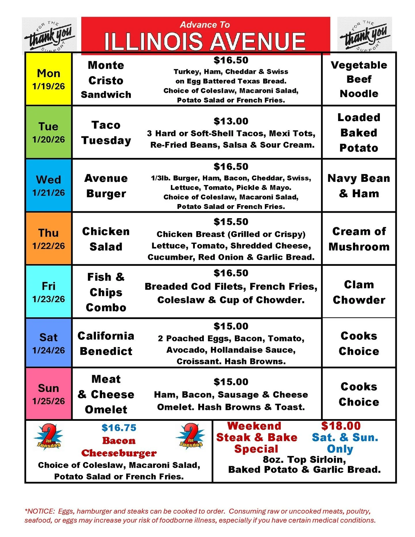 In early 2000, four brothers and their spouses came together to help Rod, the eldest brother, find a business to run. After exploring various opportunities, they acquired an older tavern in Spokane called "Jimmies Tavern." Following renovations, painting, and other improvements, they opened the Illinois Avenue Bar and Grill on November 8, 2000. This year, 2025, marks our 25th year in operation. Along with the name change, we transitioned from a tavern to a bar, now offering a selection of not only beer and wine but also mixed drinks and a full food menu