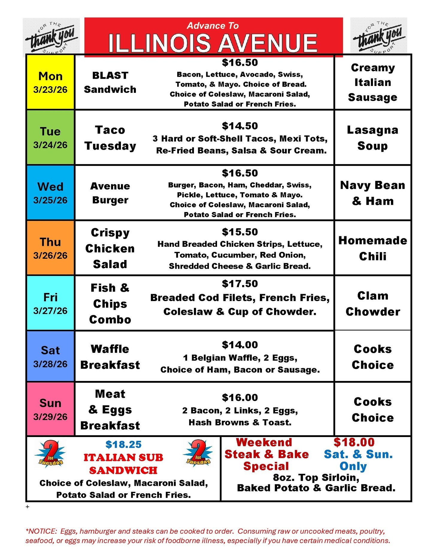 Situated in the Logan Neighborhood of North Spokane, the Illinois Avenue Bar & Grill is a local sports bar equipped with numerous large high-definition TVs and a wallet-friendly full-service kitchen.