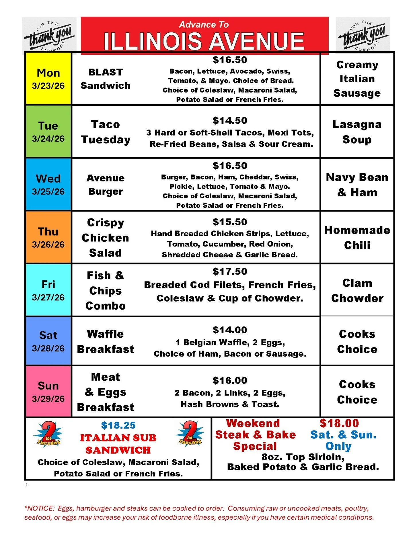 Make your event memorable at The Illinois Avenue Bar & Grill, where great food and a great atmosphere come together to create the perfect backdrop for your occasion. Contact us today to plan your next event!